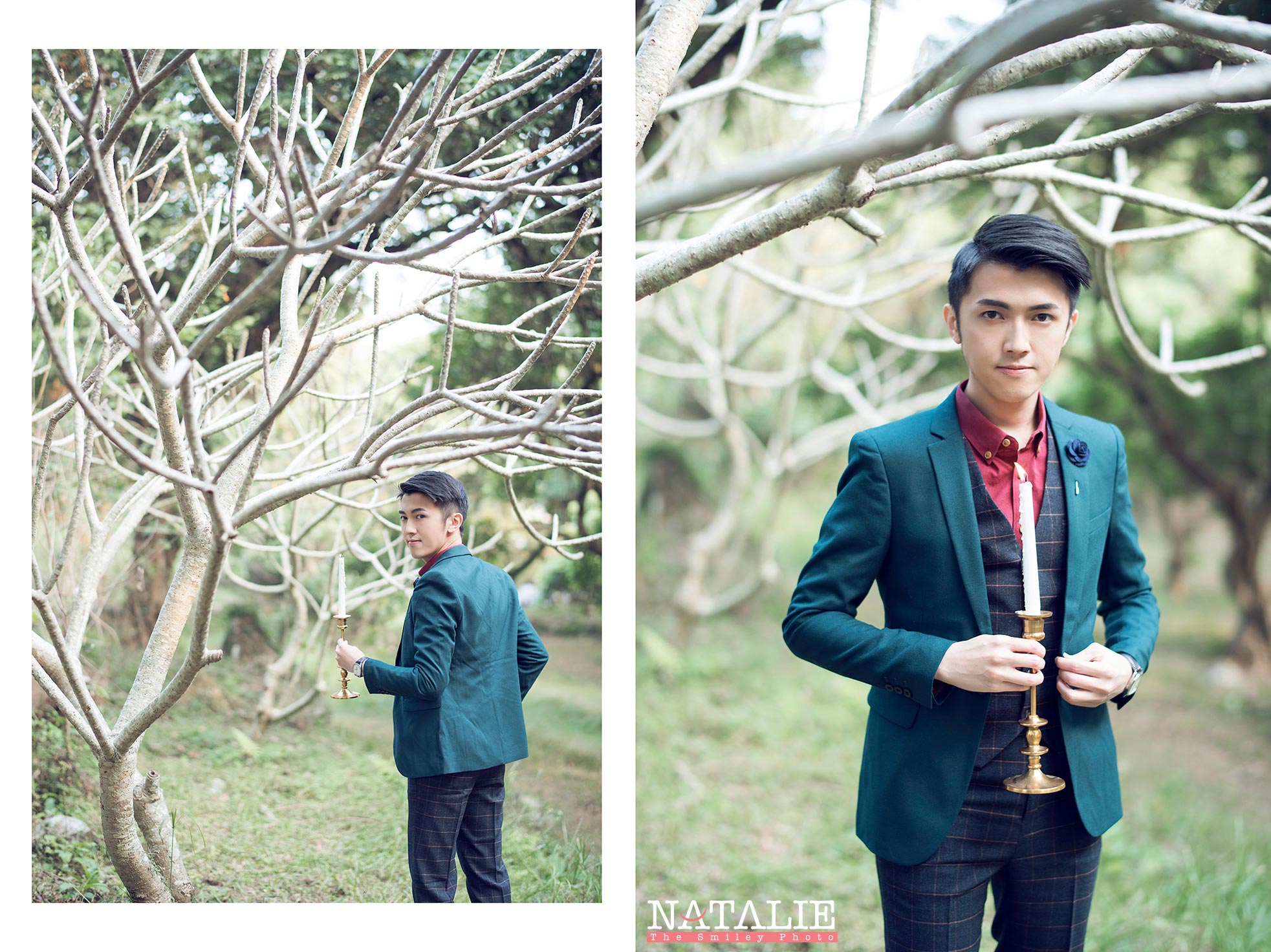 因此我們選到西貢的小樹林拍攝,帶著小道具,在冬日暖暖的陽光下,拍了一輯柔美的相片。