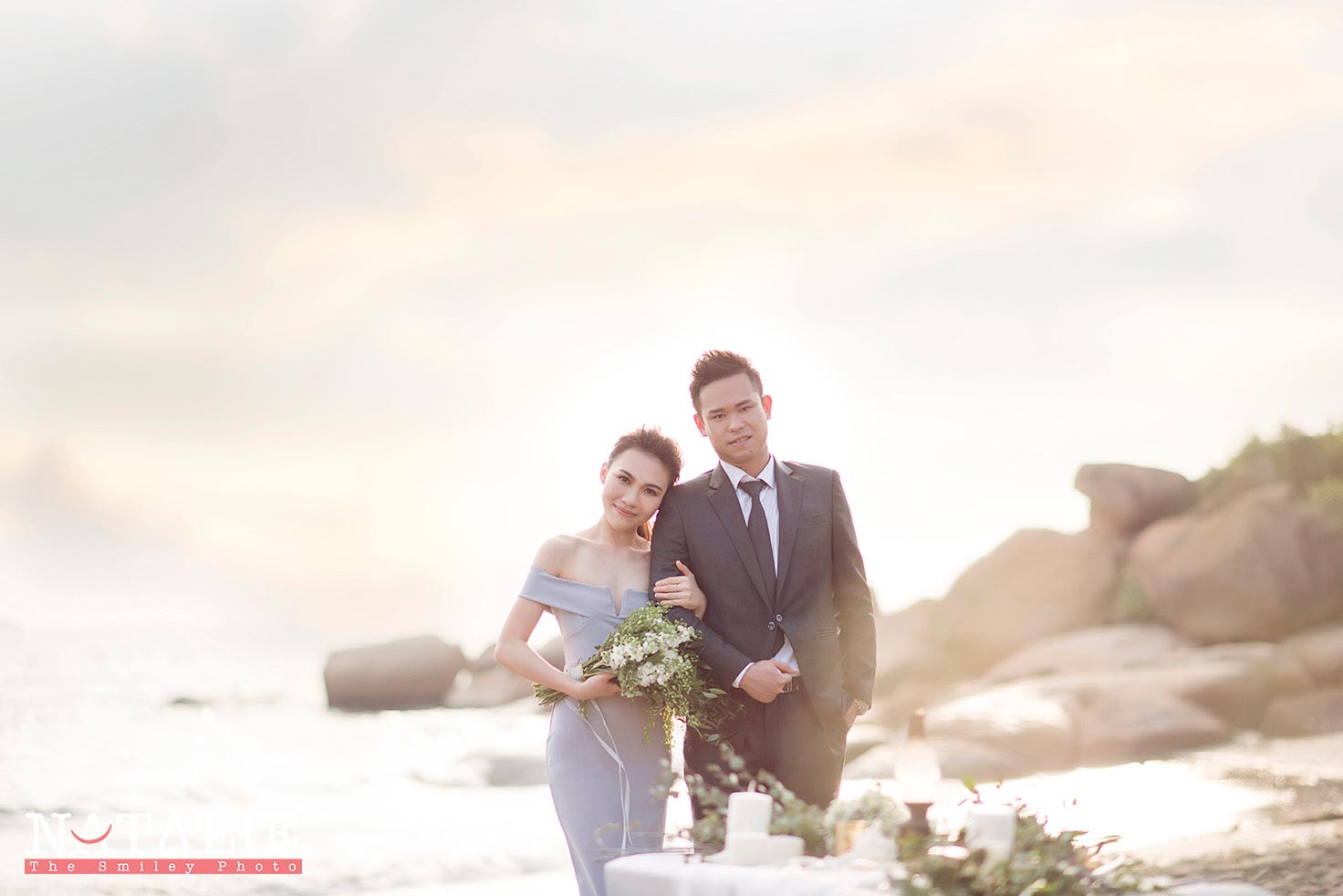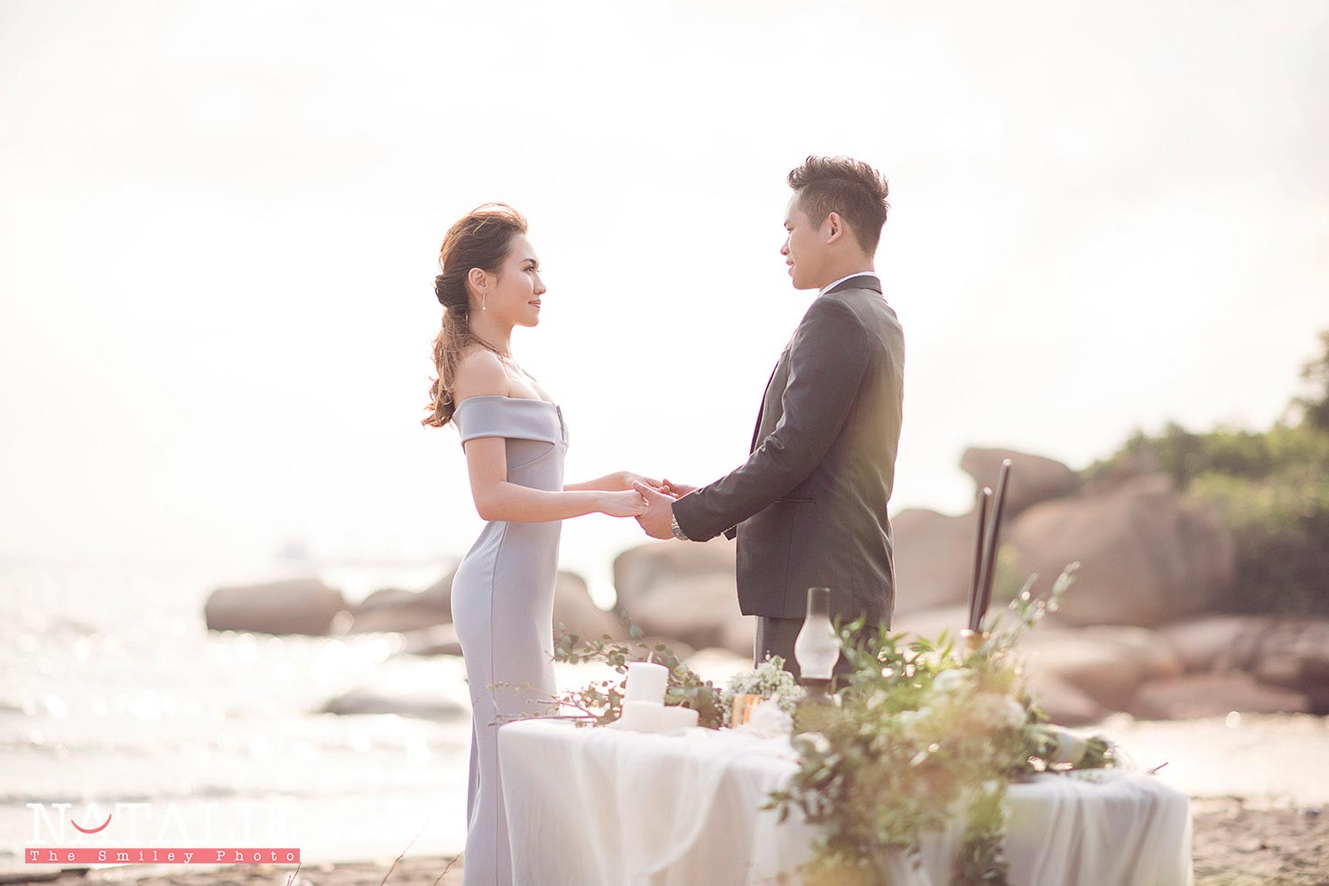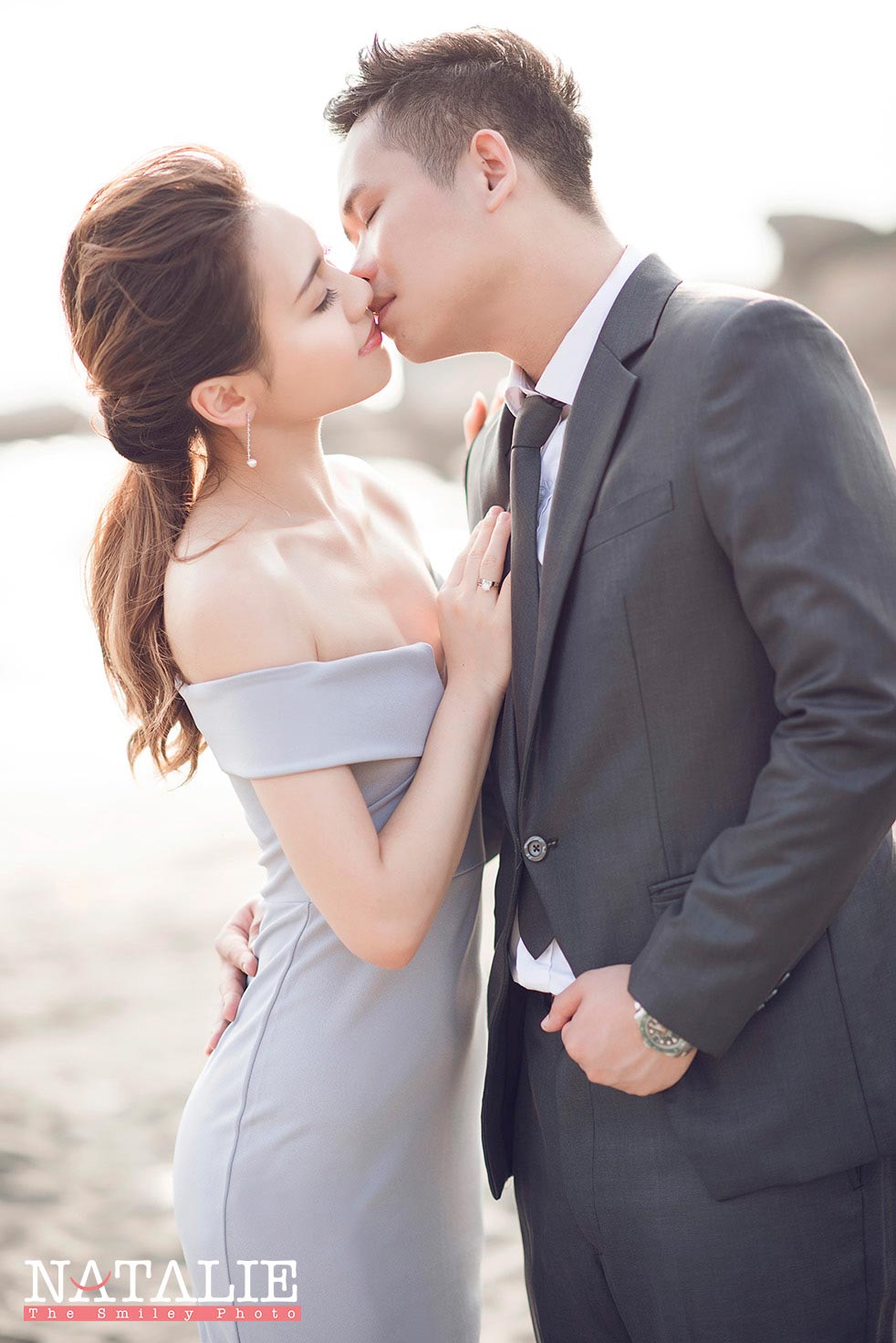 Yoyo 同 阿荃同好多新娘子一樣,在逛婚展的時候一口氣找了婚紗婚禮攝影師,後來拍了以後,效果沒有想像中理想,便又再拍一次。這次我們到沙灘拍攝,天氣很熱,但在海風的陪伴下,反而比在城市中拍攝舒適。也許在人比較少的地點拍攝,兩位主角非常放鬆,Yoyo更是一位表現力極佳的新娘子呢。