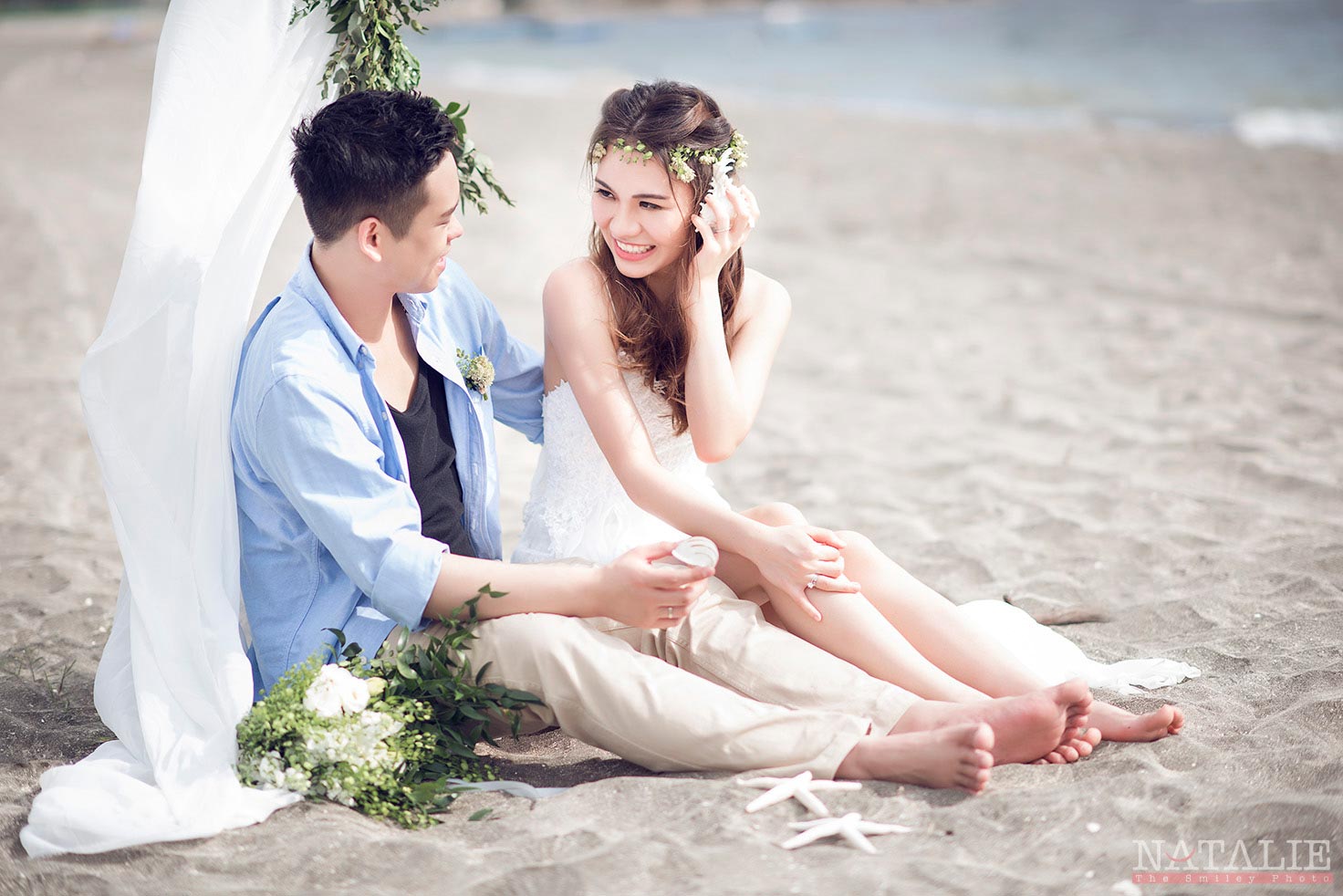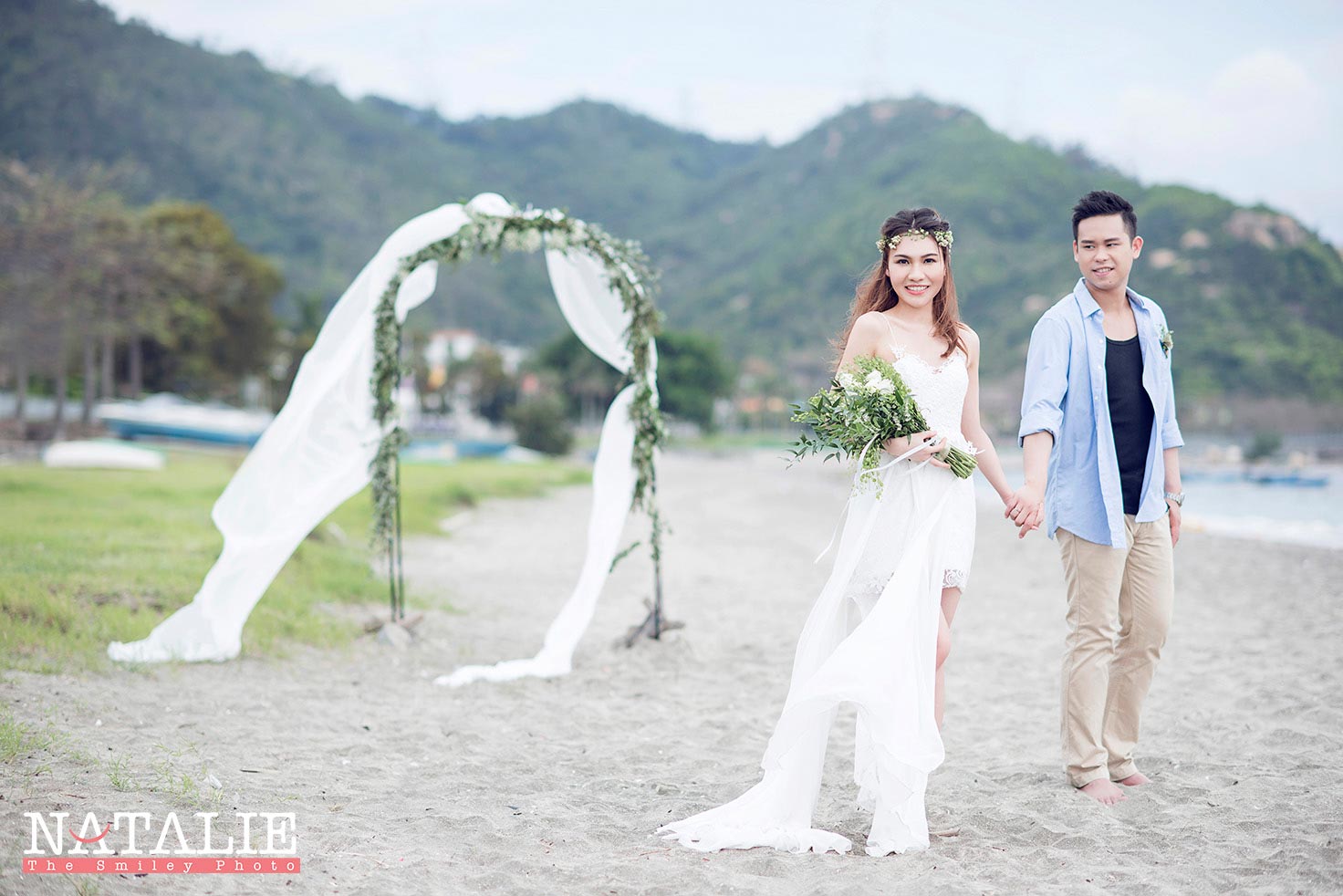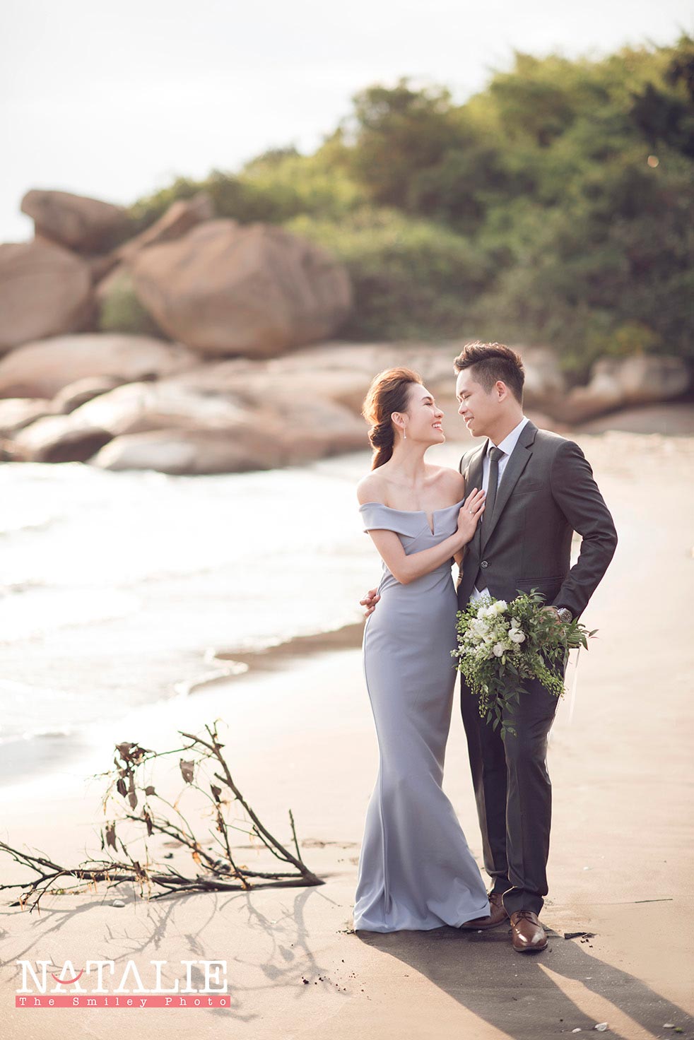 Yoyo 同 阿荃同好多新娘子一樣,在逛婚展的時候一口氣找了婚紗婚禮攝影師,後來拍了以後,效果沒有想像中理想,便又再拍一次。這次我們到沙灘拍攝,天氣很熱,但在海風的陪伴下,反而比在城市中拍攝舒適。也許在人比較少的地點拍攝,兩位主角非常放鬆,Yoyo更是一位表現力極佳的新娘子呢。