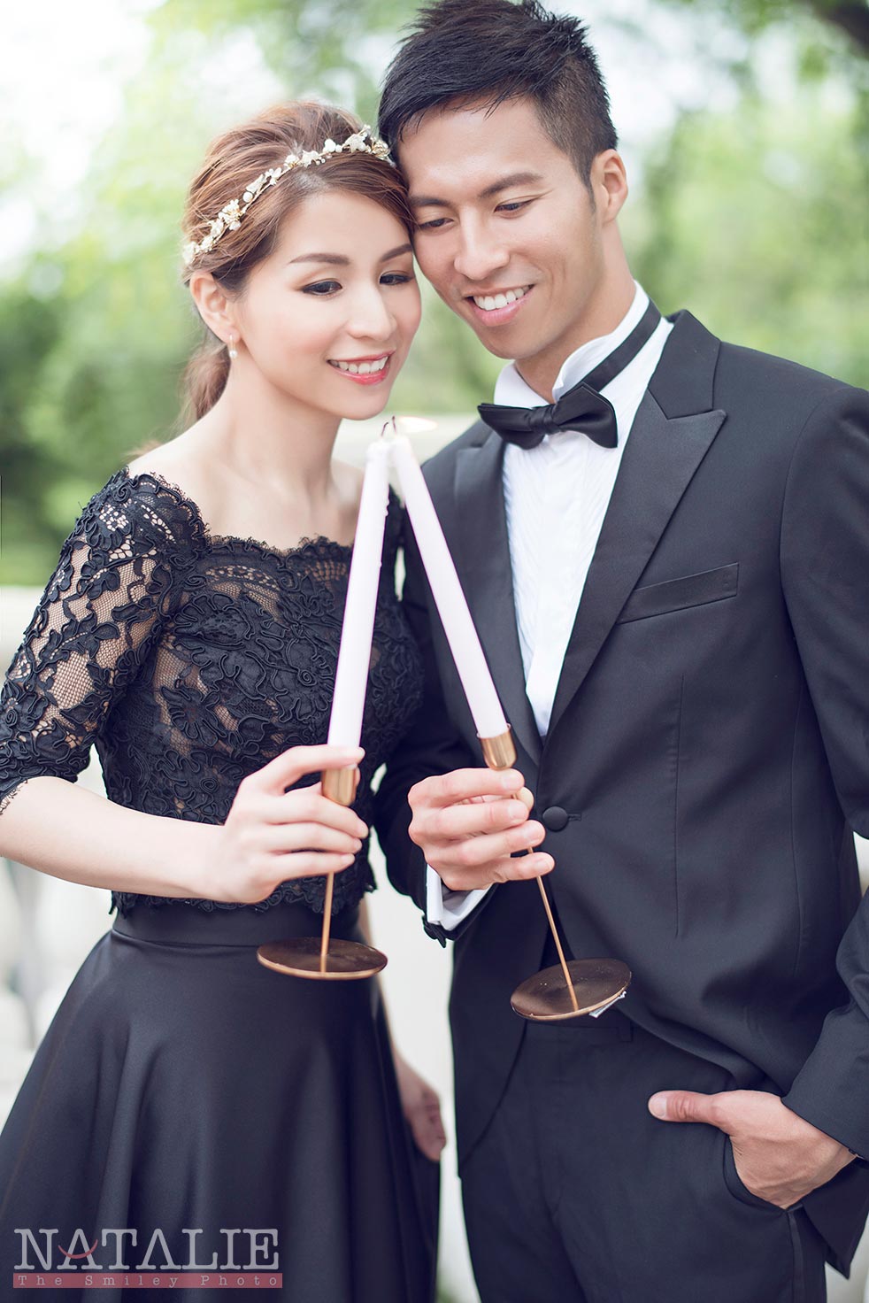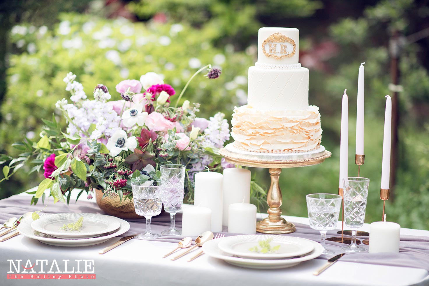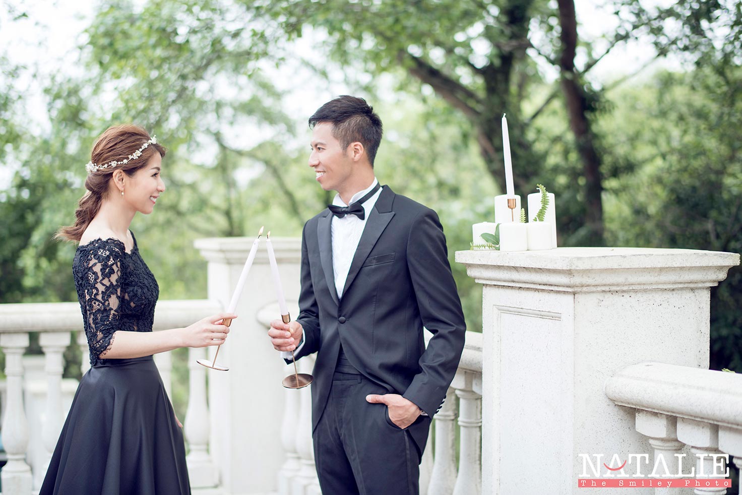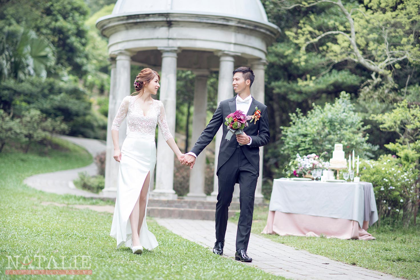 Helen 跟我見面的時候,說起她喜歡做甜品,當時我也沒想到她那是她「非常專業的」興趣。由於想配合精緻的甜品,我們一開始便決定做一個小庭園西式餐桌的佈置。直到拍攝那天,她把親手做的結婚蛋糕搬出來時,我們都目定口呆了,完全不輸專業的蛋糕師傅呀。