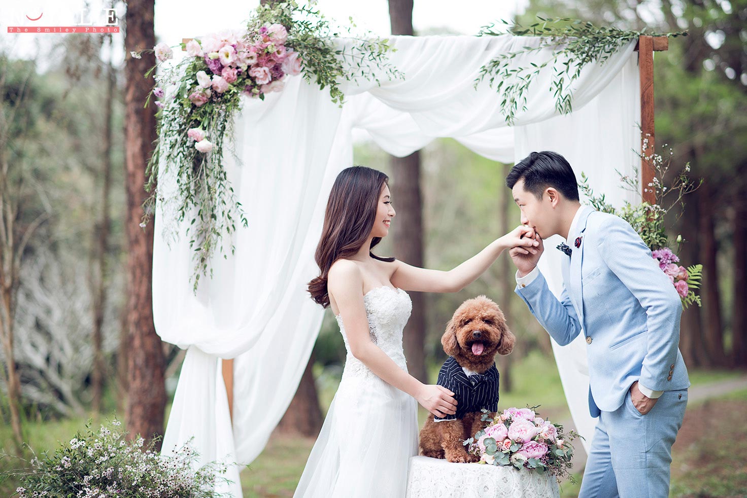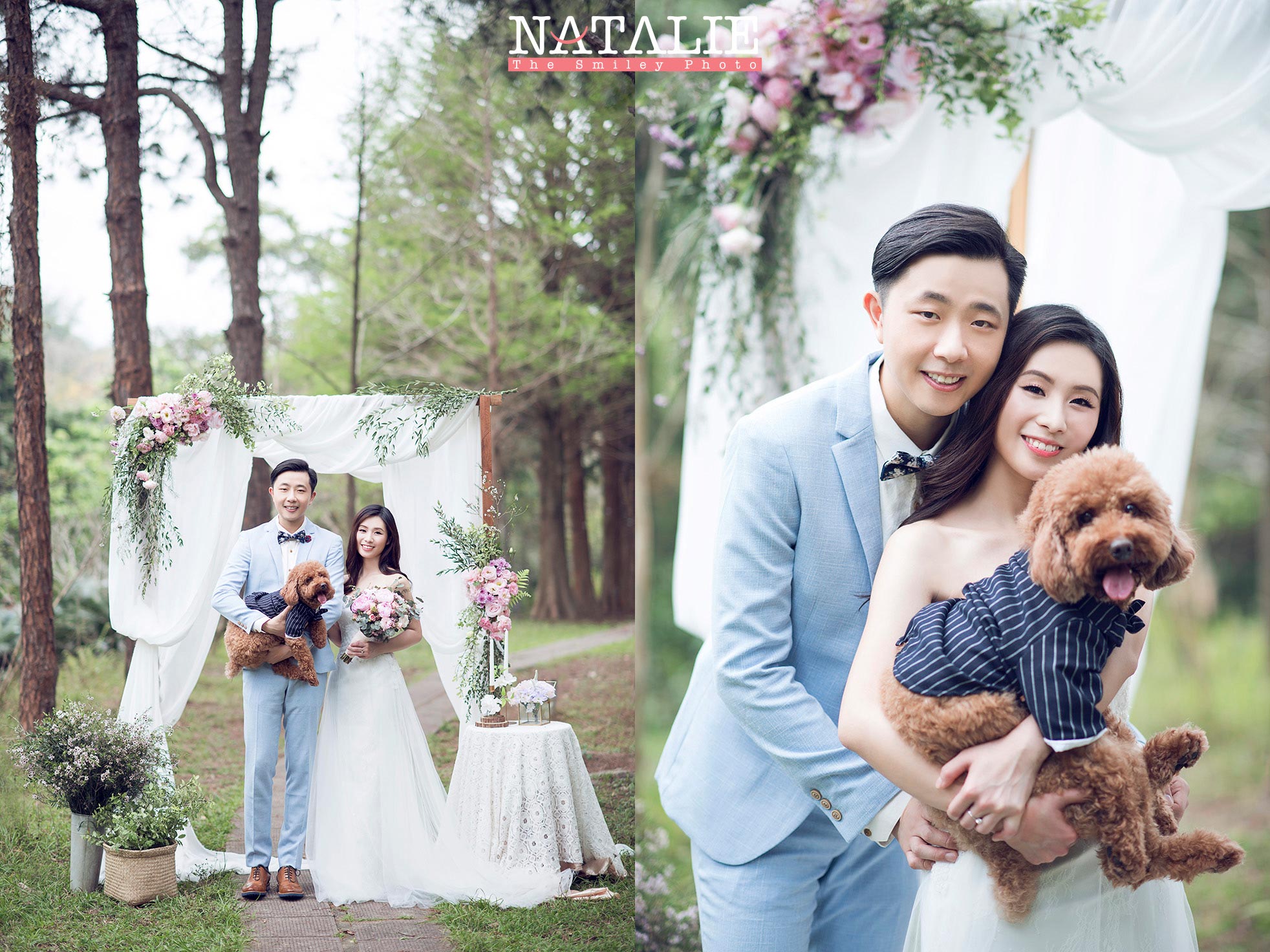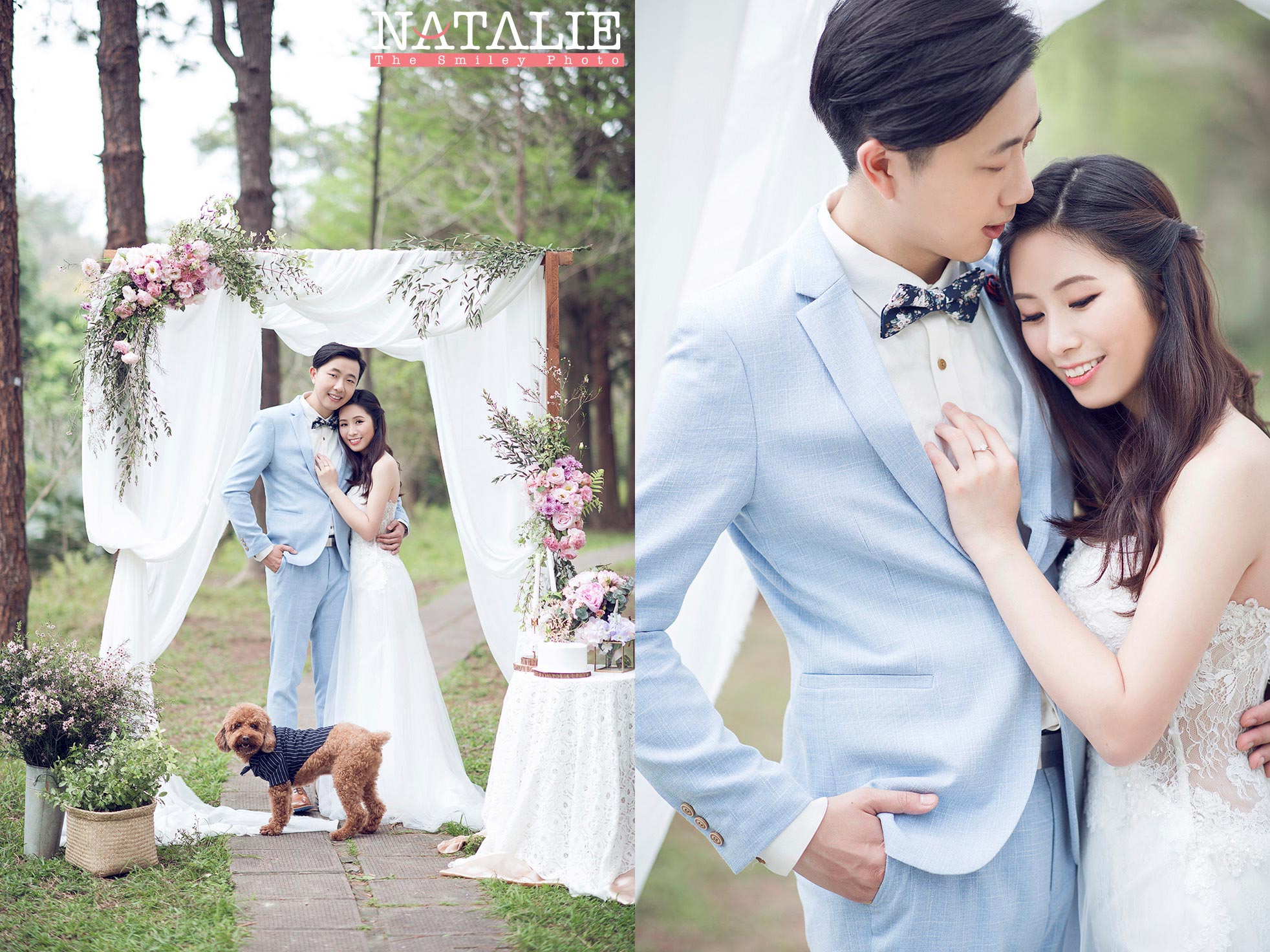 這一次,我準備了鮮花Arch,每一次的鮮花Arch都是體力的挑戰,因為搬運SET UP都很累,但是拍出來很美,這也值得了。而最意想不到的是,Jen Jen 帶上的狗狗波子非常搶鏡,為這輯Prewedding 錦上添花。