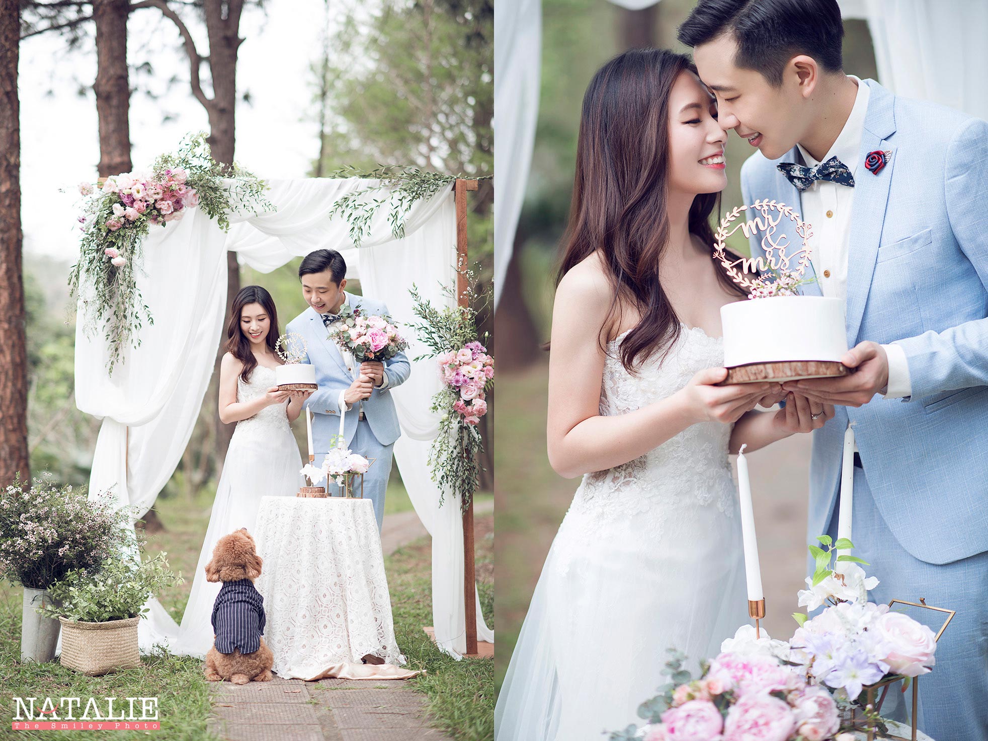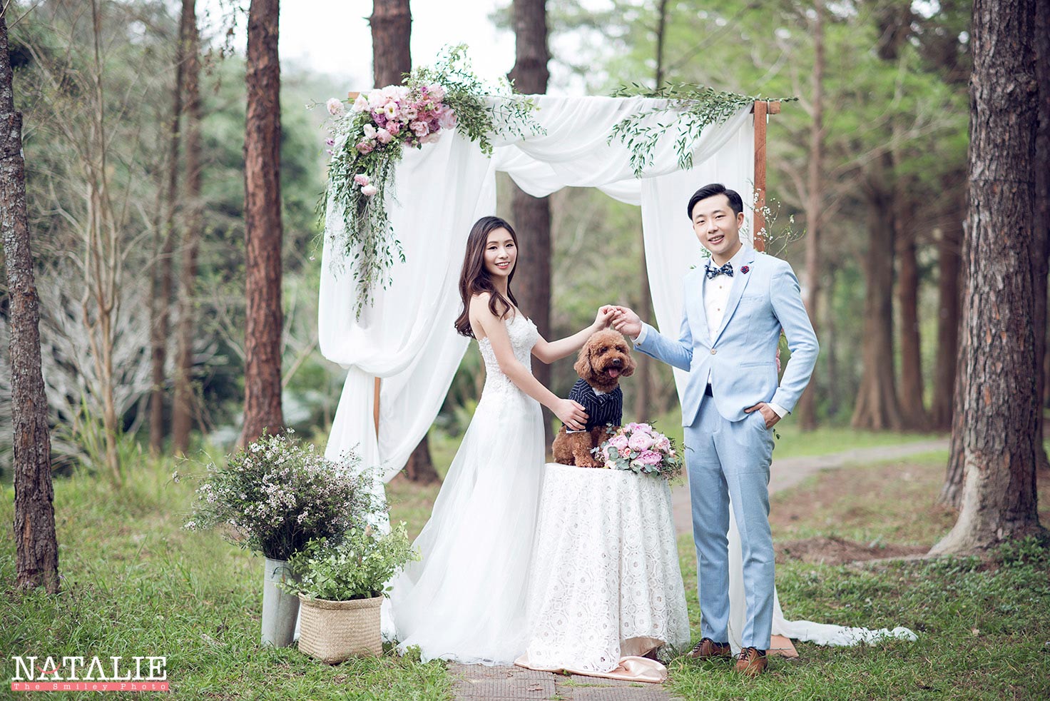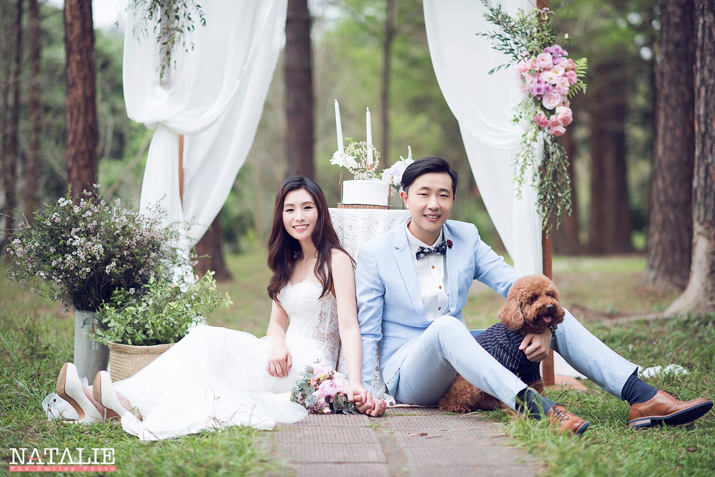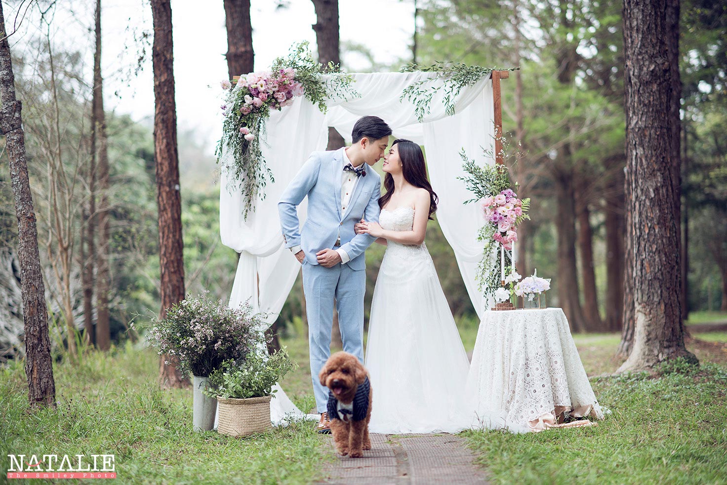 這一次,我準備了鮮花Arch,每一次的鮮花Arch都是體力的挑戰,因為搬運SET UP都很累,但是拍出來很美,這也值得了。而最意想不到的是,Jen Jen 帶上的狗狗波子非常搶鏡,為這輯Prewedding 錦上添花。