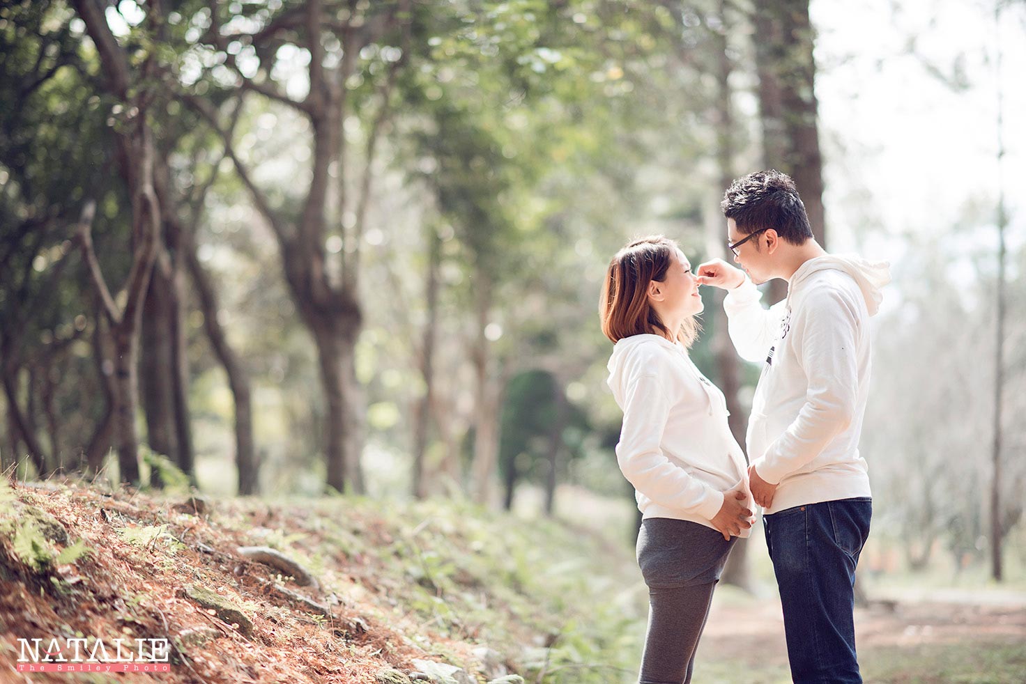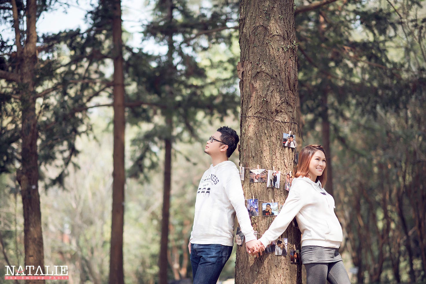 Nicole & Lung Engagement Session Maternity, Pre-wedding 孕婦照與訂婚照一起拍,是非常不錯的決定。Nicole 選擇在冬日的午後,帶著兩人的合照,來到這個鬧市中的小花園拍攝。我為他們把相片夾到樹上,滿載了回憶也滿載了愛,時常認為,一輯好的婚紗照,除了有美美的場景服飾外,更應該帶著二人的相處點滴。