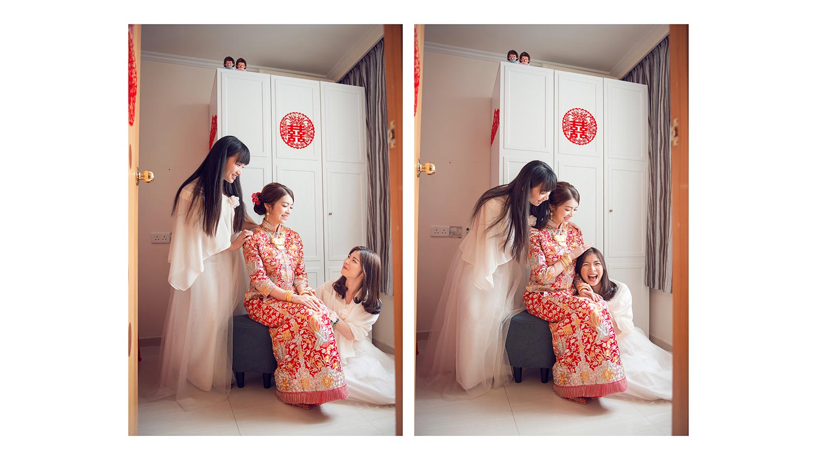 YING & PO WEDDING DAY Wedding Day Ying & Po 是非常有禮客氣的新人,(感恩開業以來遇到的新人對Natalie都非常好)而且Ying擁有一雙水汪汪的大眼睛,是非常漂亮的新娘子。是日行程有些微阻礙,縮短了外拍時間,但新人與兄弟姊妹非常合作,也抓緊了時間拍到照片。